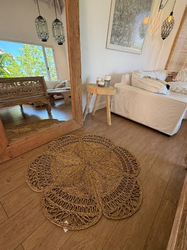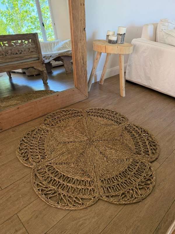 Alfombra Sol, fabricada con seagrass, fibras naturales de alta calidad, que brindan resistencia y una textura suave al tacto. La calidad de los materiales garantiza una larga vida útil y un mantenimiento sencillo.