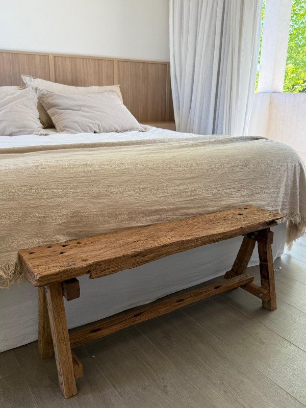 Banco realizada en madera dura, Lapacho. Madera caracterizada por su dureza y resistencia, siendo una de las mejores para exterior. Es apta para intereperie total, no requiere protección ni tratamiento.