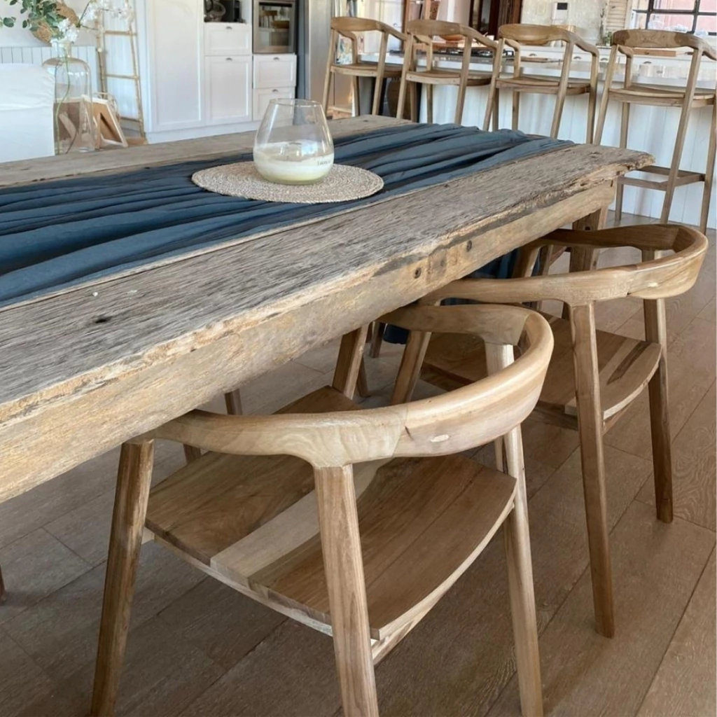 Mesa comedor realizado en madera dura, Lapacho. Madera caracterizada por su dureza y resistencia, siendo una de las mejores para exterior. Es apta para intereperie total, no requiere protección ni tratamiento.